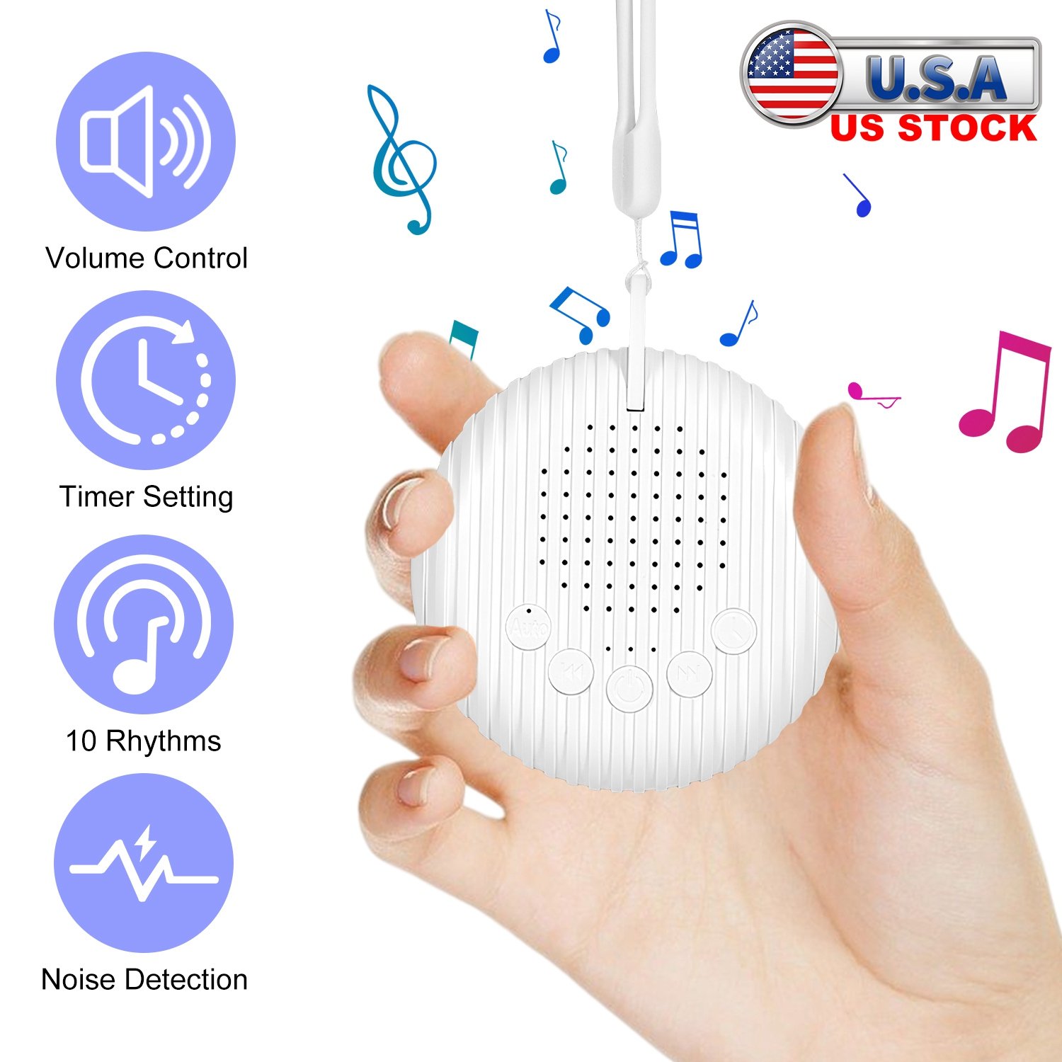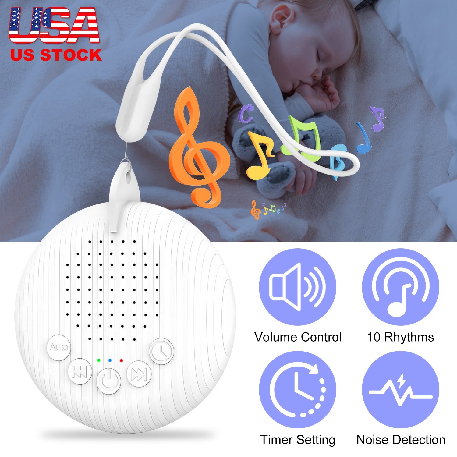 Say goodbye to unwanted noise disruptions and hello to deep relaxation and focus. Come with 10 soothing rhythms and stepless volume adjustment, our portable white noise sound machine allows for personalization experience, ensuring your comfort and peace of mind. Auto noise detection function detects for noise lasting over 10 seconds and automatically activates the white noise sound to counter them. Additionally, 3 timer settings and memory function provides you more convenience during using. Whether it\'s for your baby\'s tranquility, your own peaceful rest, or enhanced focus during activities like yoga, this compact white noise machine is your perfect companion.