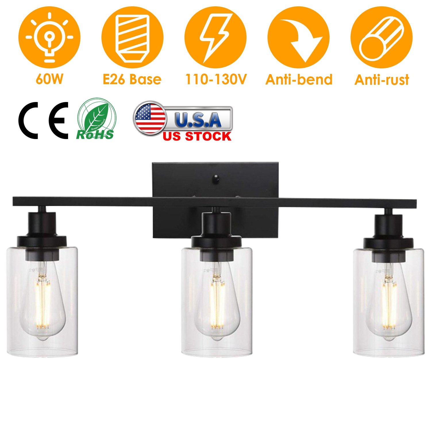 More than any other room in the house, the bathroom requires lighting for multiple tasks like shaving, applying makeup, and so on. Just install this bathroom wall light over a sink or vanity to get the task lighting you need! The matte black lighting body makes the vanity light fashionable, elegant and full of texture. Highly transparent cylindrical glass shades allow the light to diffuse outward in all directions, which will light both the face and the room most evenly. You can freely choose a 2-head lamp or a 3-head lamp according to your own needs.